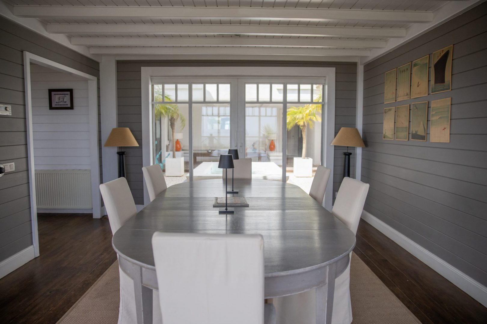 The main living area, complete with a fireplace, flows seamlessly into the lounge and kitchen, creating a welcoming and functional space for everyday family life—all framed by spectacular views. This area opens onto a generous terrace and a heated swimming pool, perfect for year-round outdoor living.