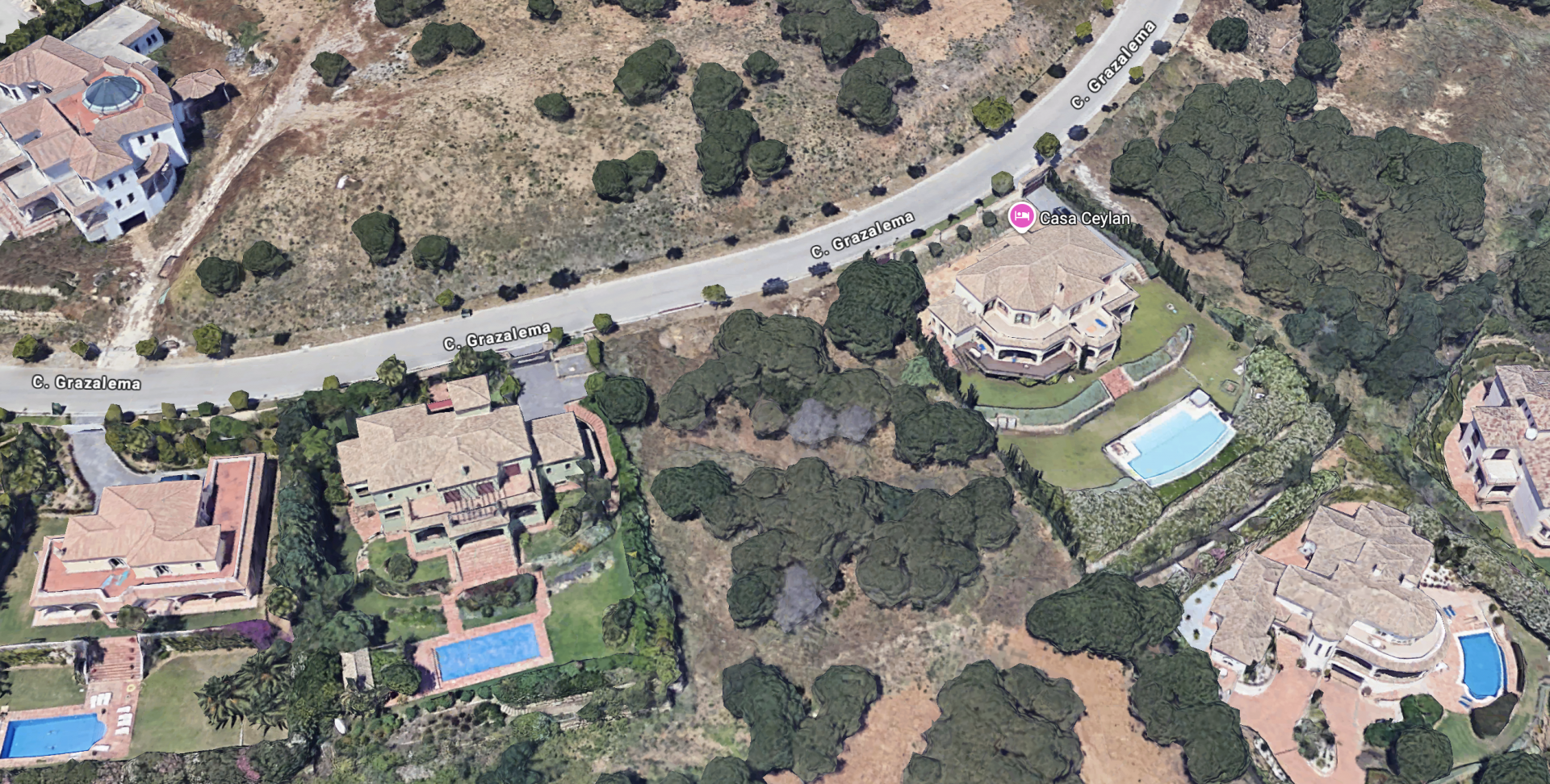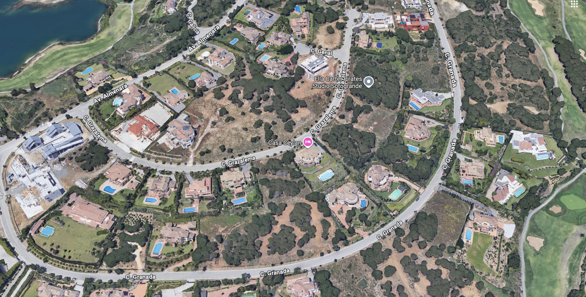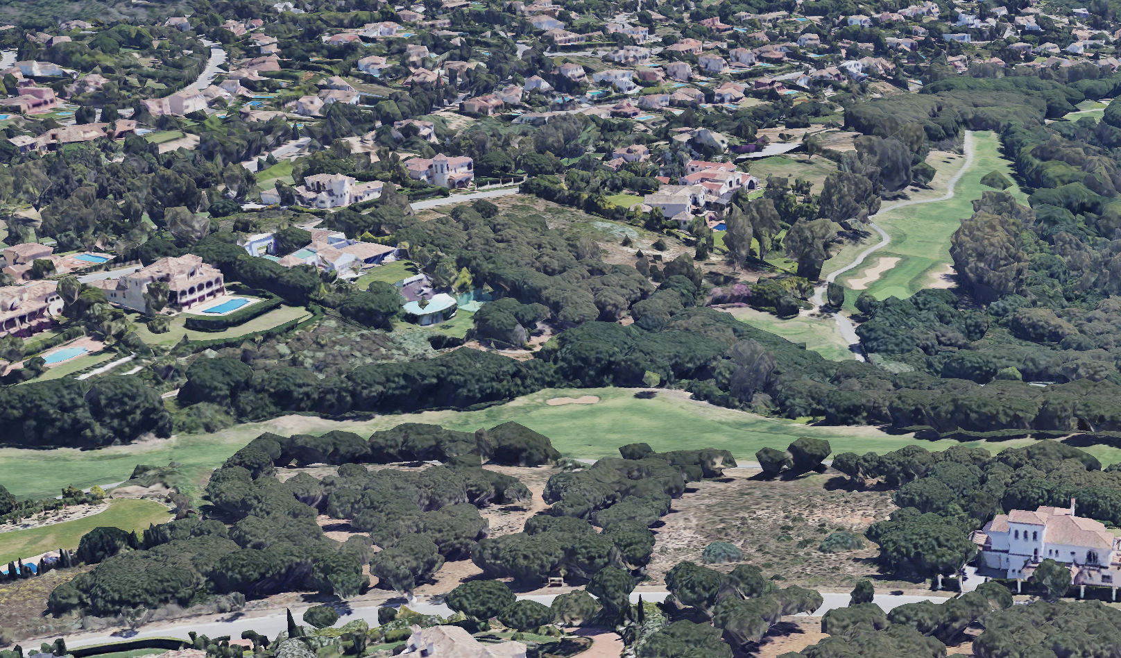 Con sus 2.550m2 orientados al SurOeste con suave inclinación del terreno le otorgan unas magníficas vistas sobre los campos de Golf de Almenara y San Roque Club.