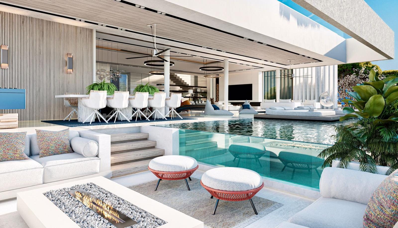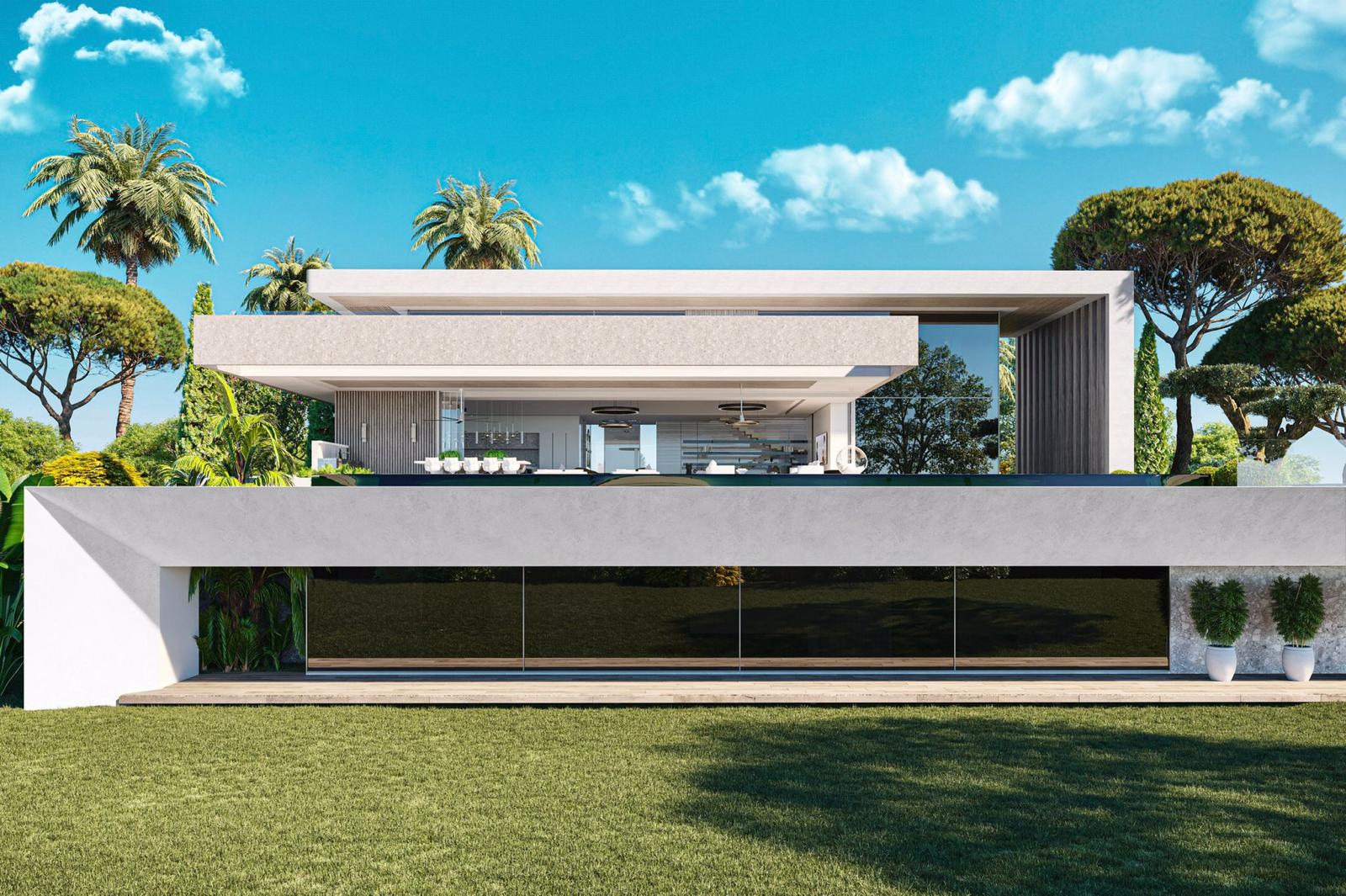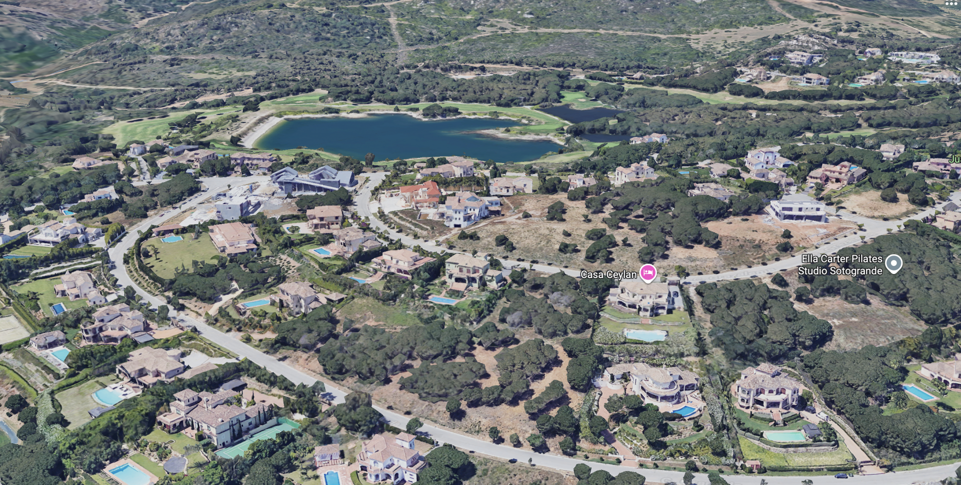 Con sus 2.550m2 orientados al SurOeste con suave inclinación del terreno le otorgan unas magníficas vistas sobre los campos de Golf de Almenara y San Roque Club.